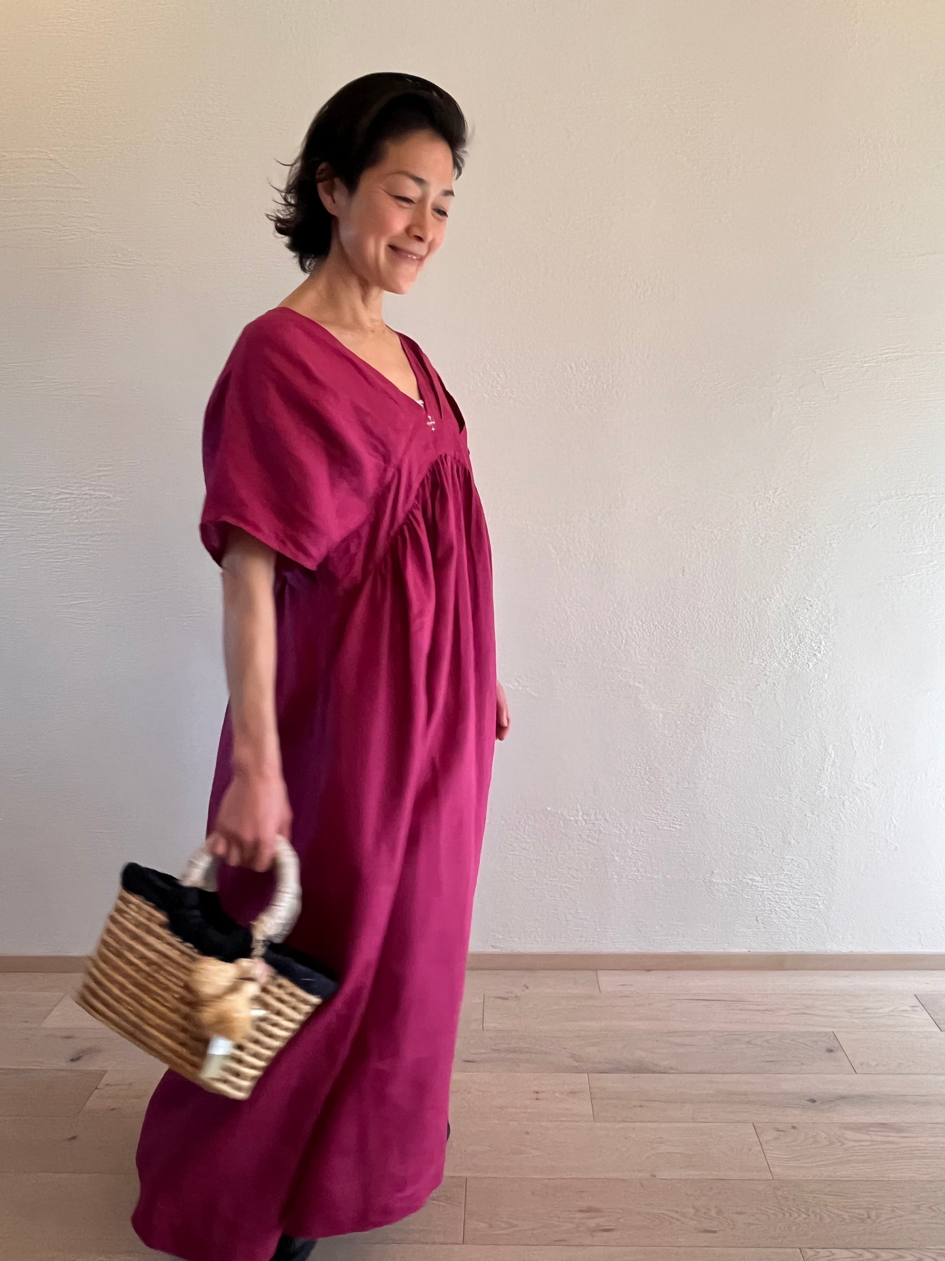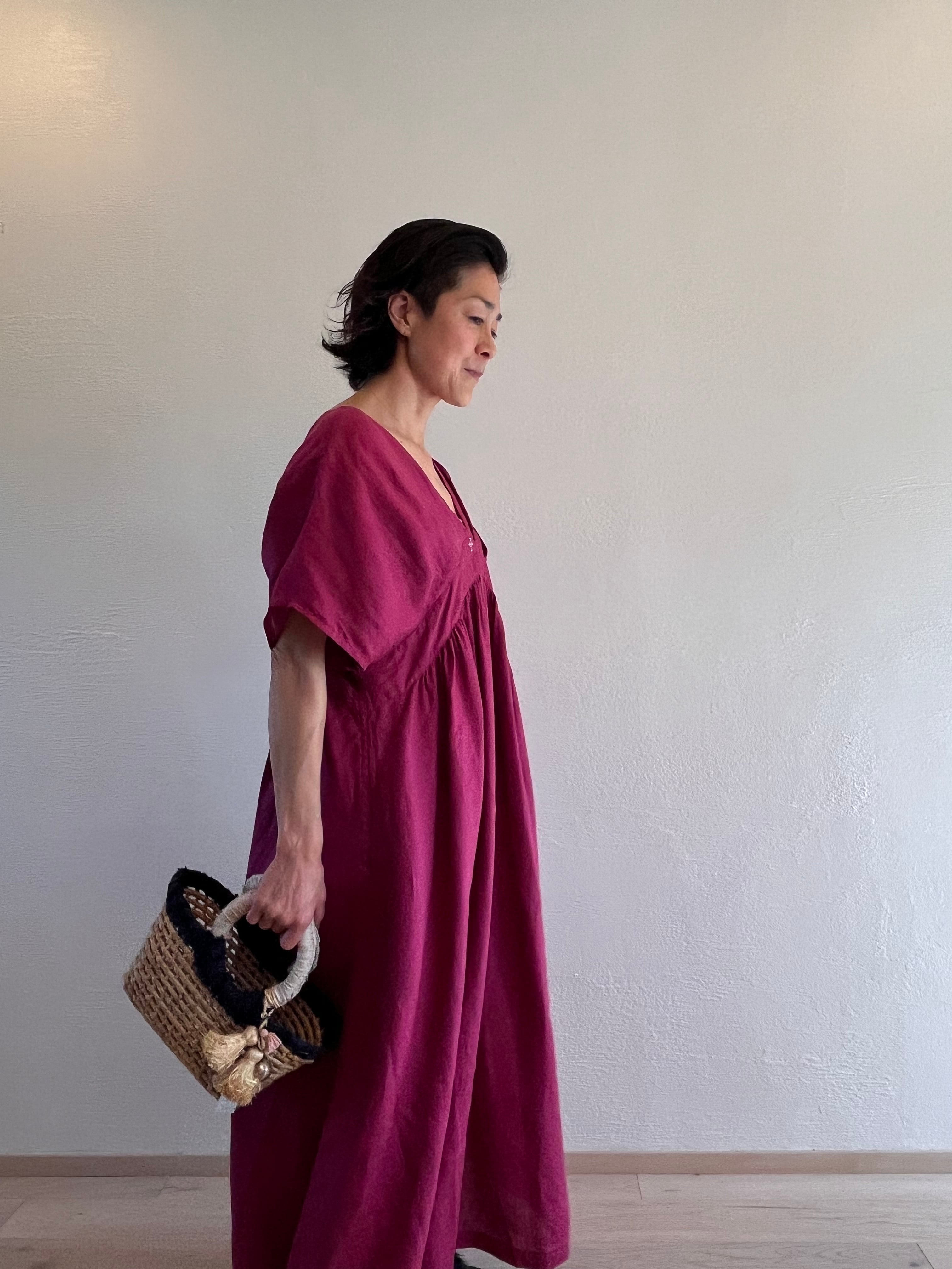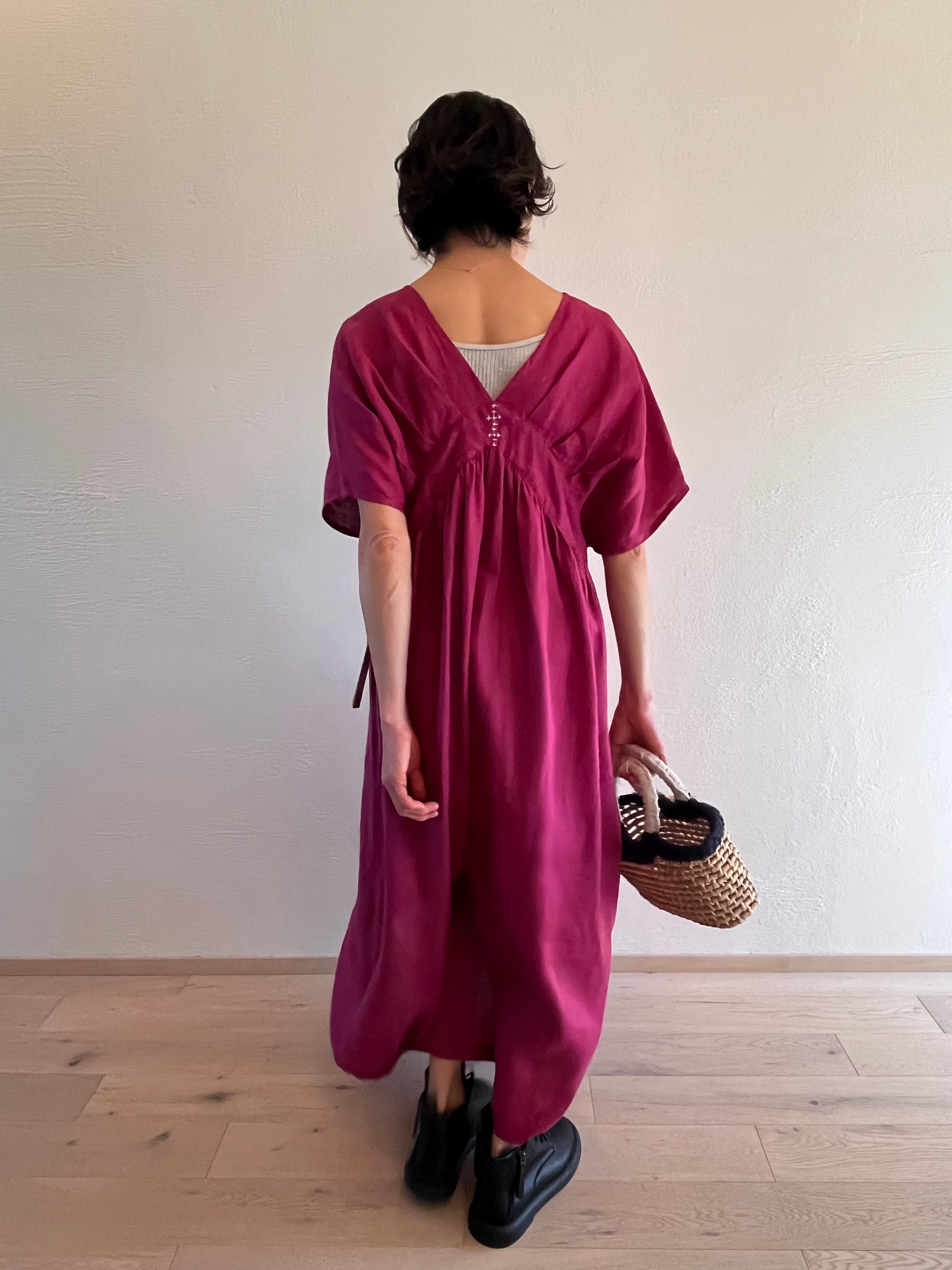 タックVネックレスワンピース purple red