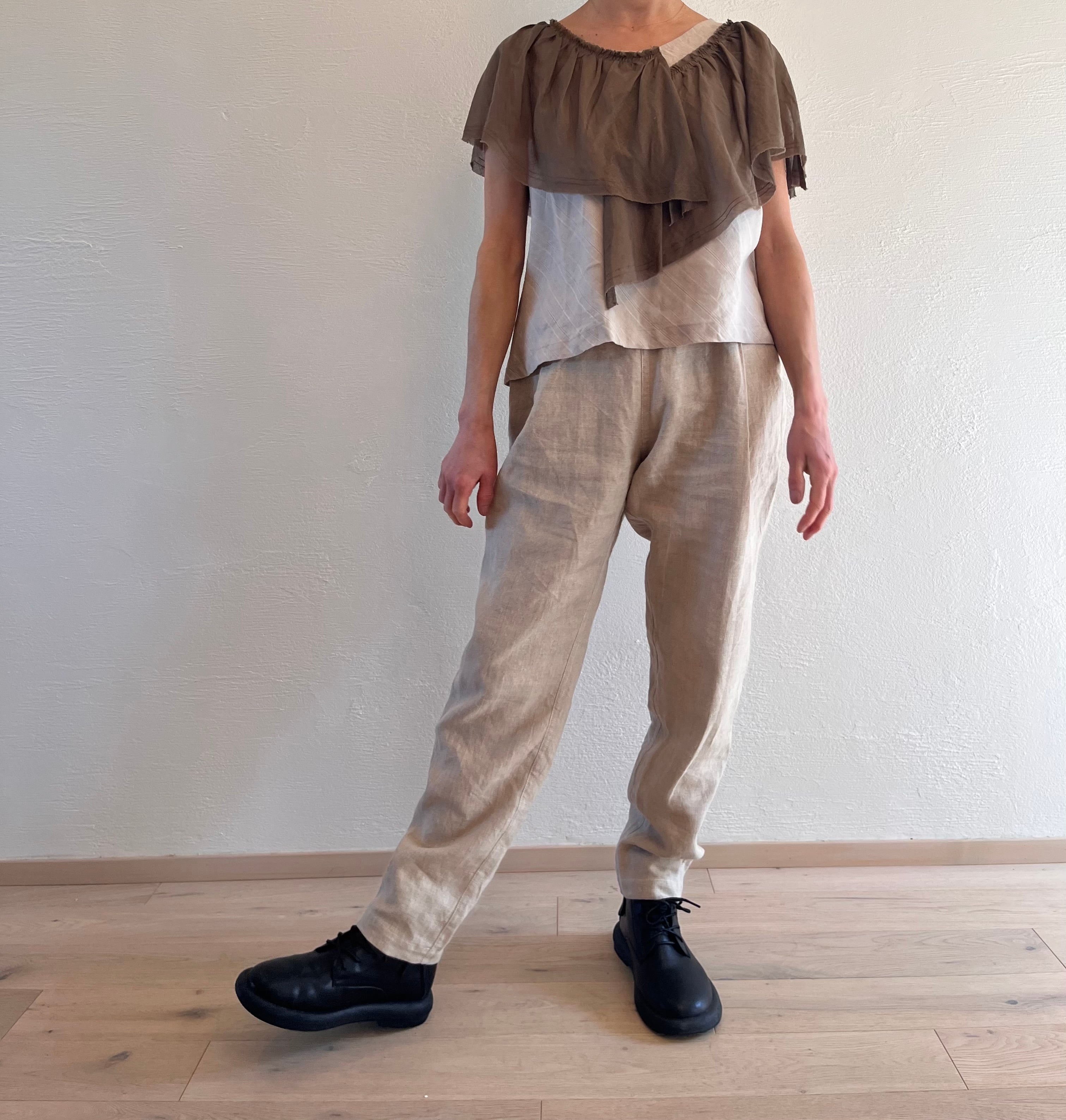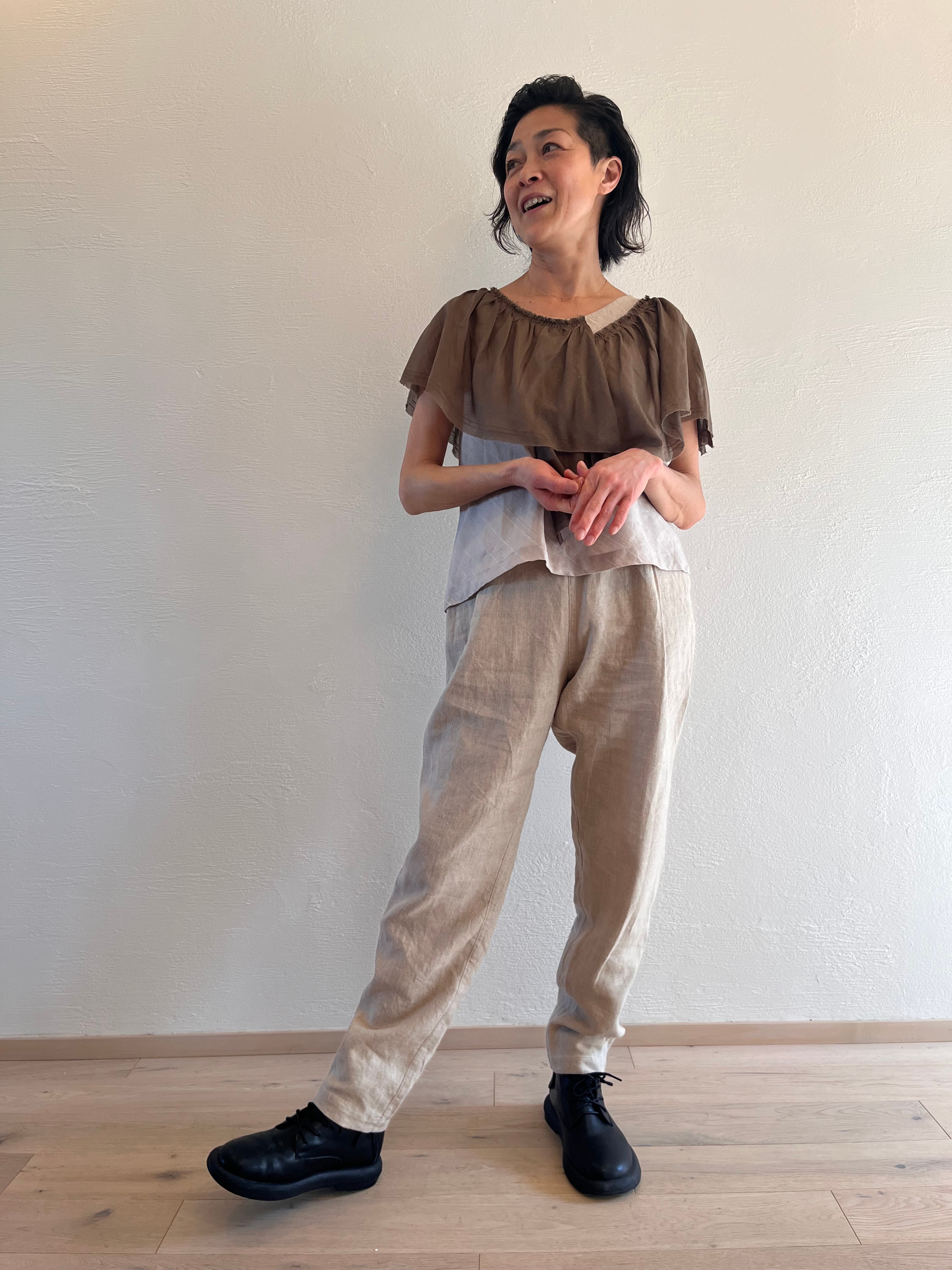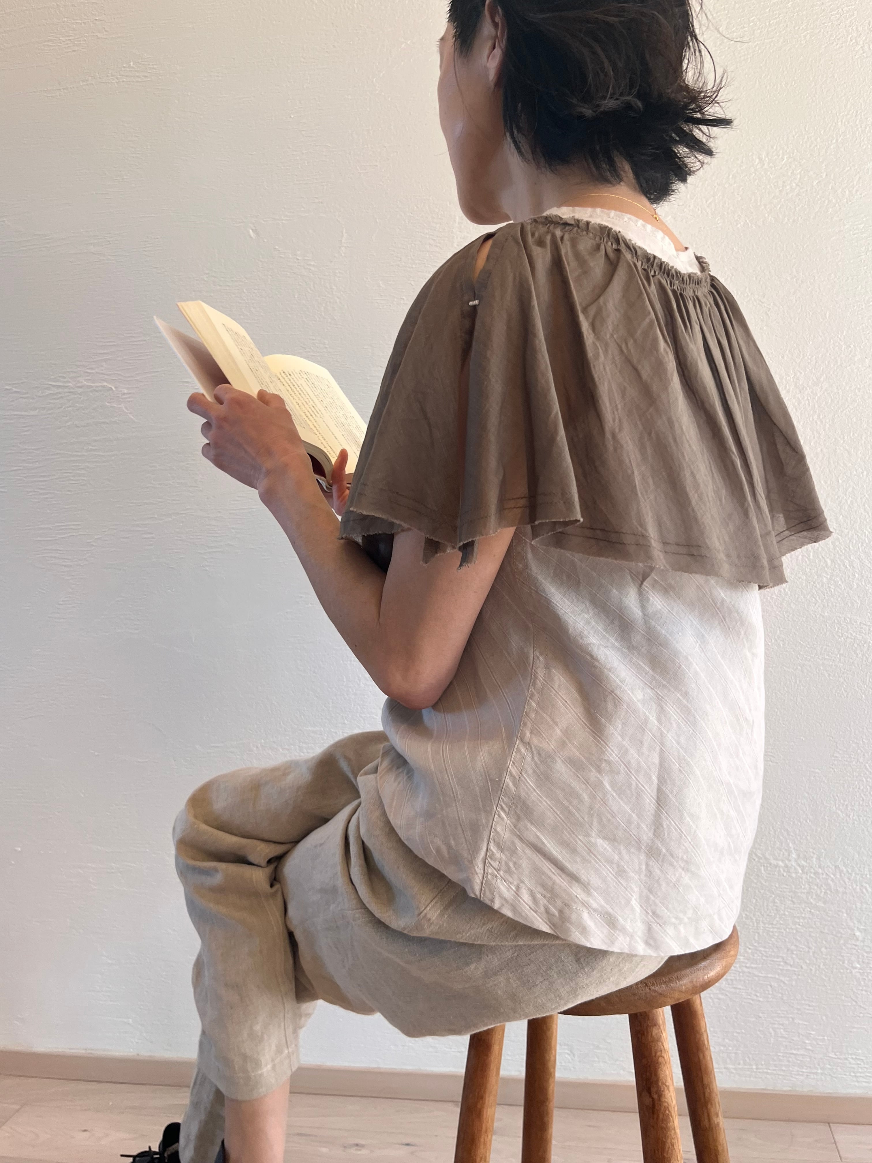 やわらかなリネンで仕立てた、フリルタンクトップ。